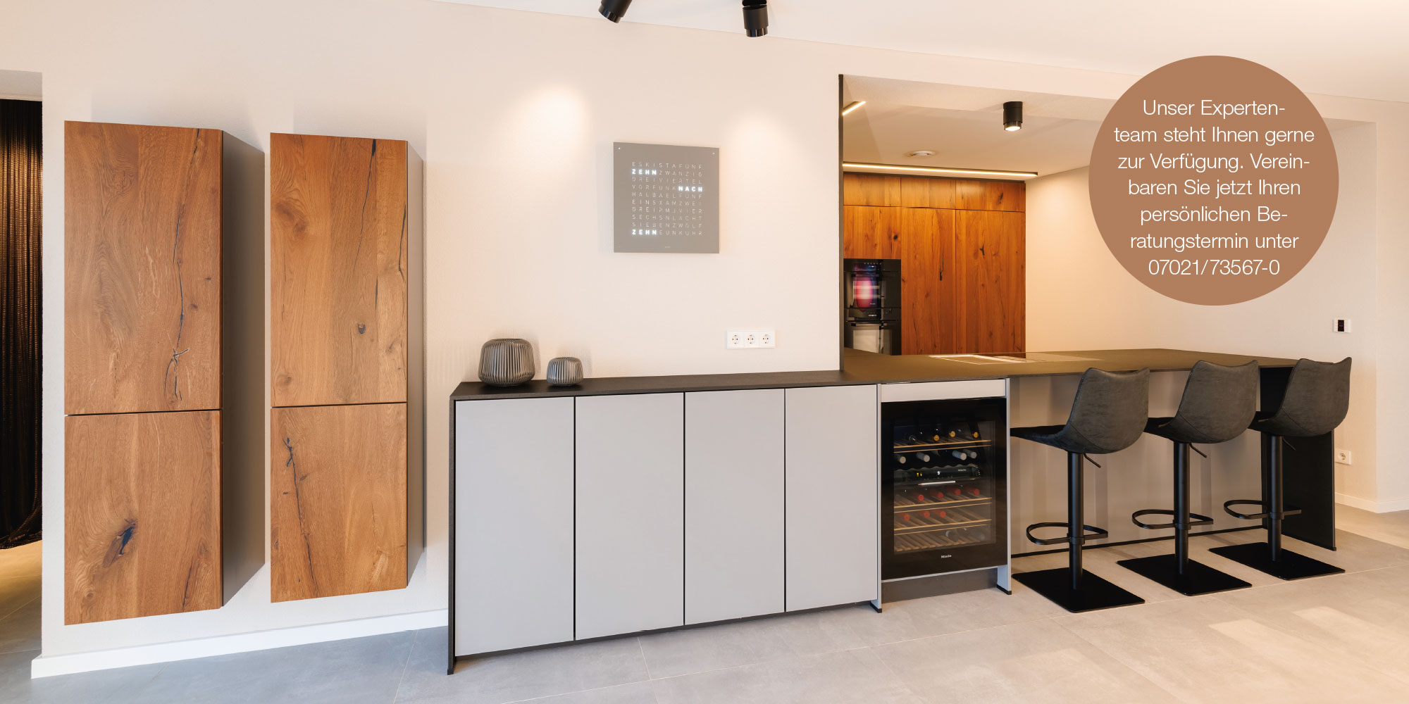Kommen Sie vorbei und lassen Sie sich in unserer großzügigen neuen Ausstellung von den aktuellen Trends in den Bereichen Küchen, Wohnen und Lifestyle inspirieren. Ganz gleich, ob Sie ein einzelnes Möbelstück suchen oder eine Komplettrenovierung planen – wir sprechen mit Ihnen über Ihre Wünsche und Vorstellungen, über das, was Sie brauchen, und das, was Sie schon haben. Gemeinsam betrachten wir den Grundriss Ihrer Räume, beraten in puncto Farbkonzepte und Materialien und finden auch bei herausfordernden Gegebenheiten eine kreative Lösung.